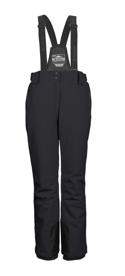 With the killtec women’s ski trousers, there are no limits to winter sports fun. The trousers have taped seams and are wind and waterproof with a water column of 10,000 mm. The coating ensures a good balance between insulation and breathability. The waist size can be adjusted using Velcro fasteners and the adjustable straps can be removed if required. Snow guards on the trouser legs prevent moisture from penetrating. The trousers are also equipped with two zippered pockets and edge protection at the leg ends. The zippers at the leg cuffs also make them easier to put on and take off. These ski trousers have a PFAs-free finish.