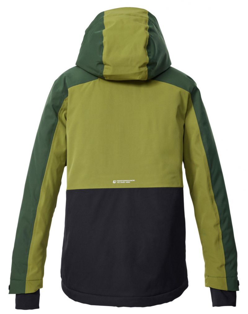 With the killtec Kids ski jacket in a trendy color block design and with clever features, there are no limits to your fun in the snow. The jacket has taped seams and is waterproof and windproof with a water column of 10,000 mm (our tip: the jacket should be waterproofed from time to time). It is also breathable (3,000 g/m²/24 h). The hood and hem are adjustable. The waterproof zipper is equipped with a practical chin guard. The non-slip, rubberized snow skirt, elastic cuffs with thumb loops and numerous pockets (side and inside pockets, chest and ski pass pocket) add to the fun of winter sports. This jacket has been impregnated without PFAs.
