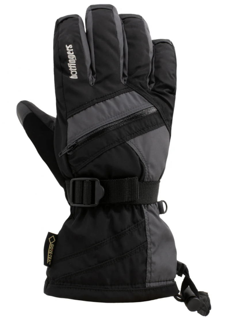 Features: Rolled Fingers, Zipper Pocket Back, Quick Release Strap, Cuff Closure.